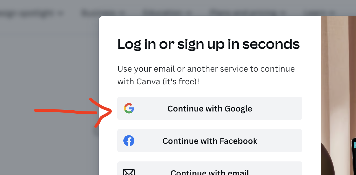 Alternatively, you can use Google Apps to log in to Canva in 1 click: