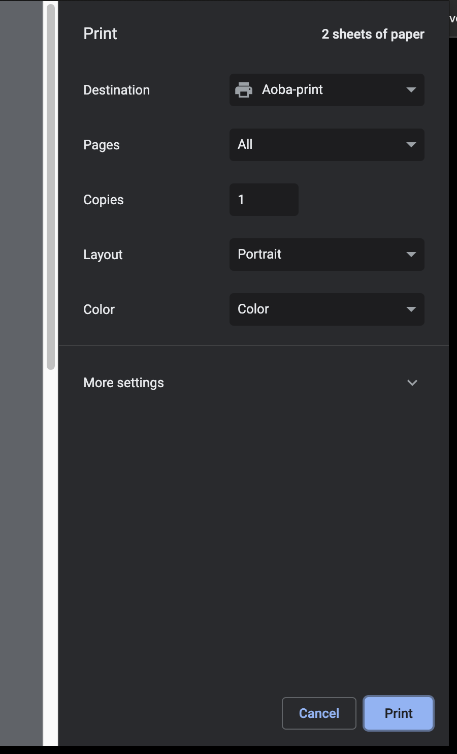 Google Chrome | Mac OS X Standard Print Dialog |