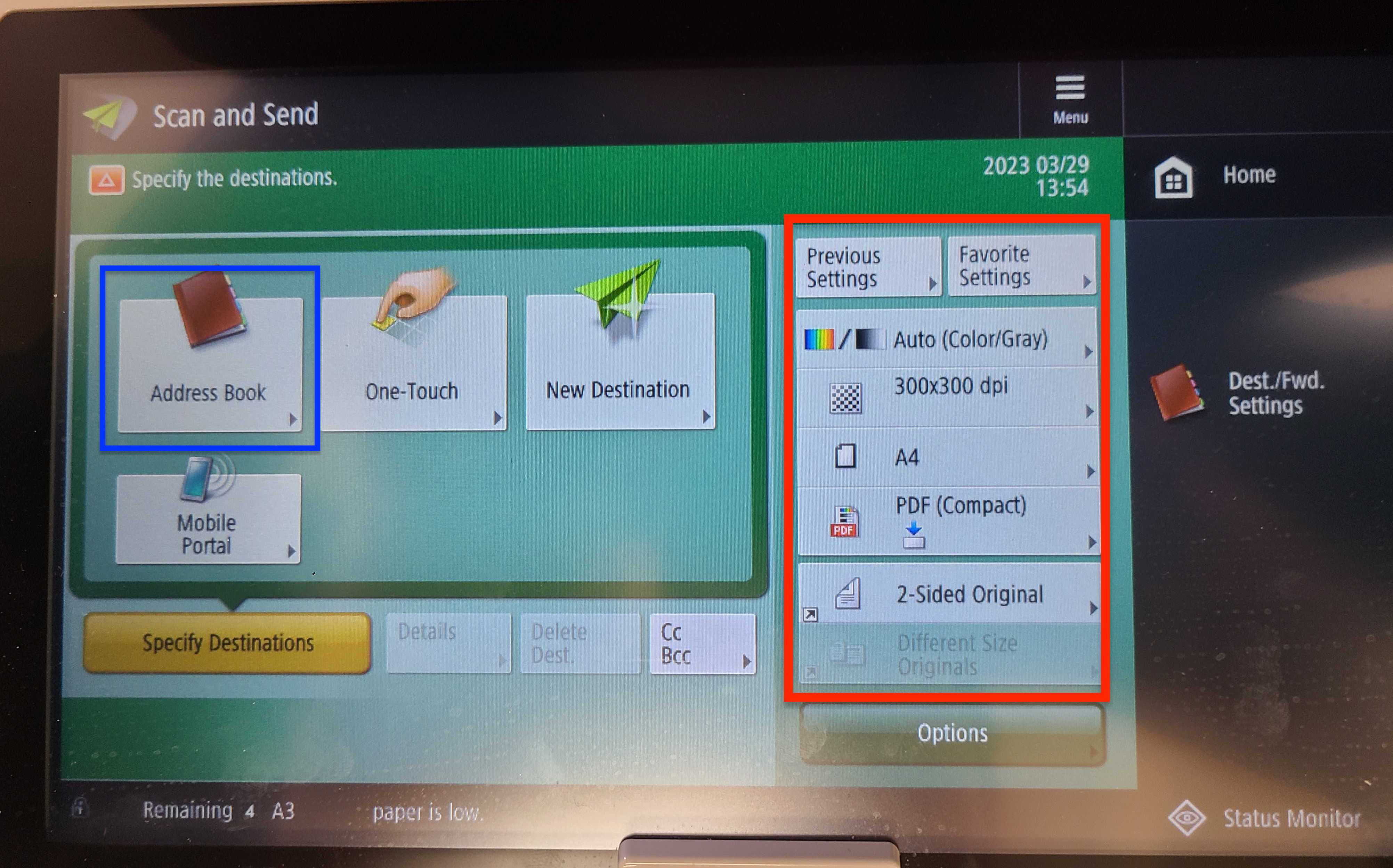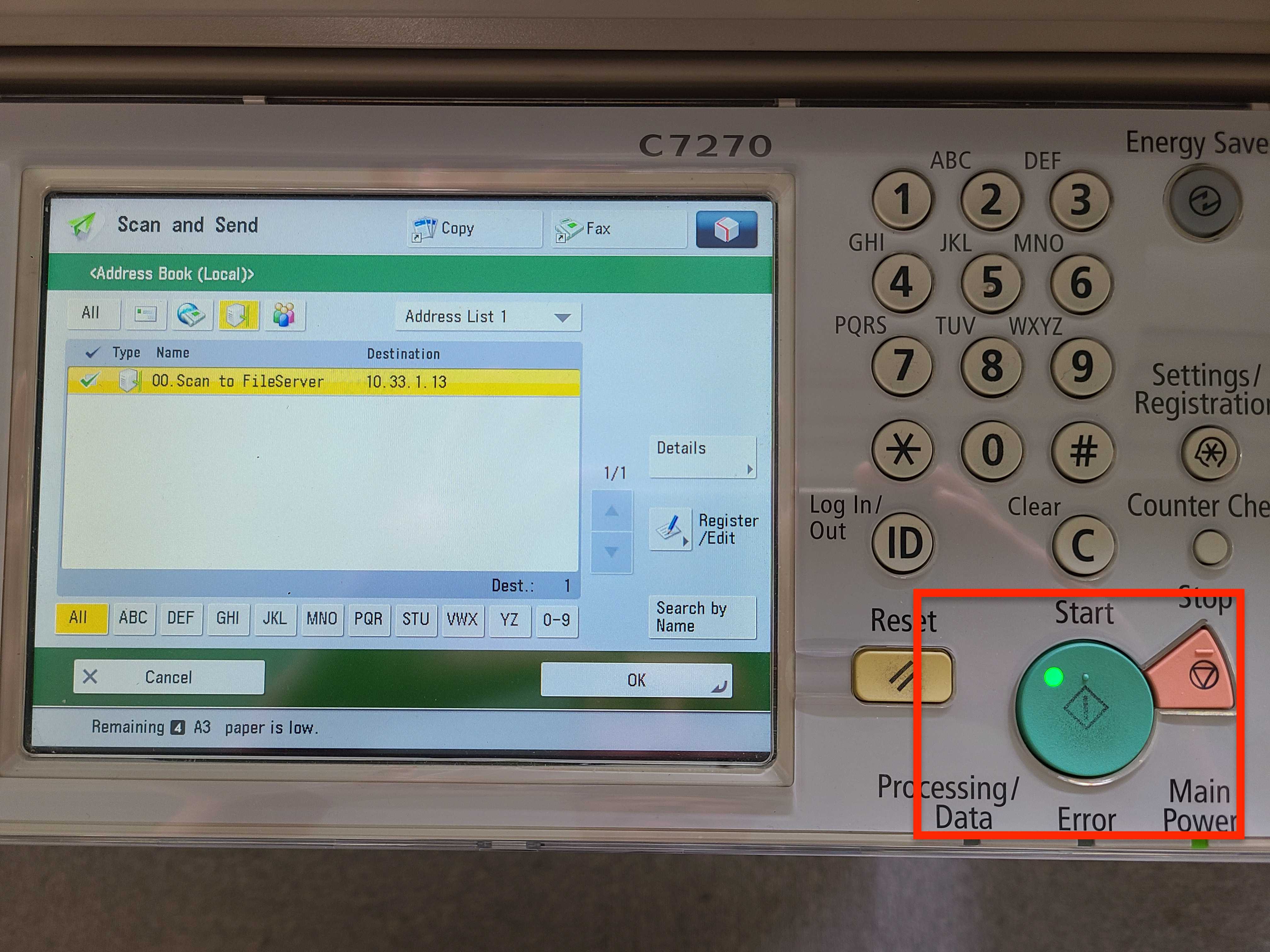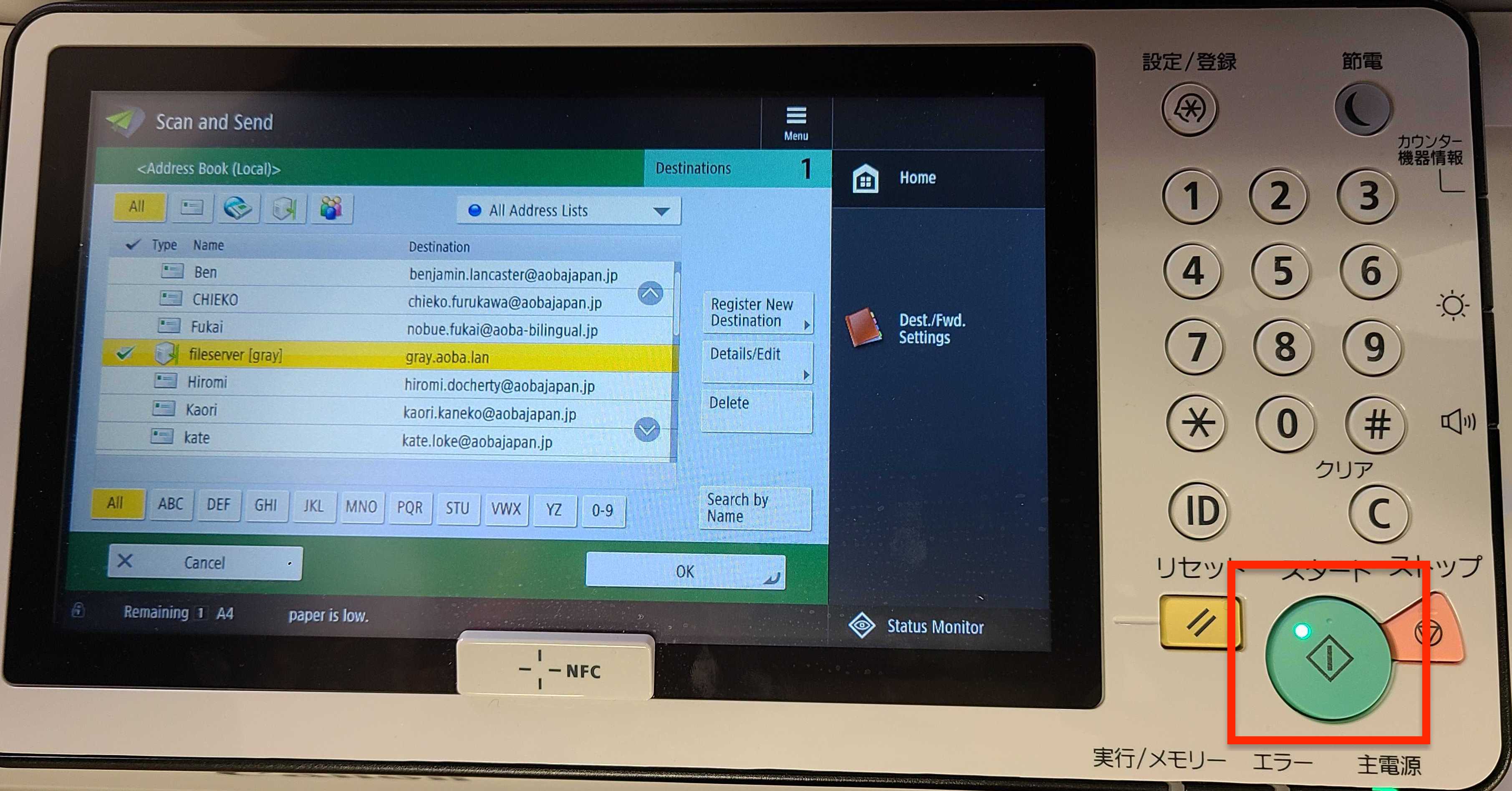 Instructions for scanning documents using the Canon MFP at A-JIS campuses and sending them to the FileServer where the data can then be retrieved.
