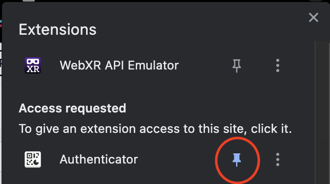 If you don’t see the Authenticator icon, click the puzzle icon to open the list of extensions and then click the Authenticator icon. You can click the pin icon to pin it as well!