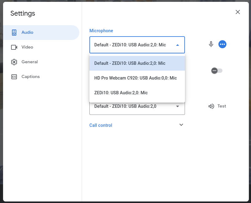 Make sure that the Microphone section dropdown is selected to ZEDi10: USB Audio 2,0: Mic.