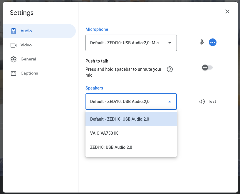 Make sure that the Speakers section dropdown is selected to ZEDi10: USB Audio 2,0.