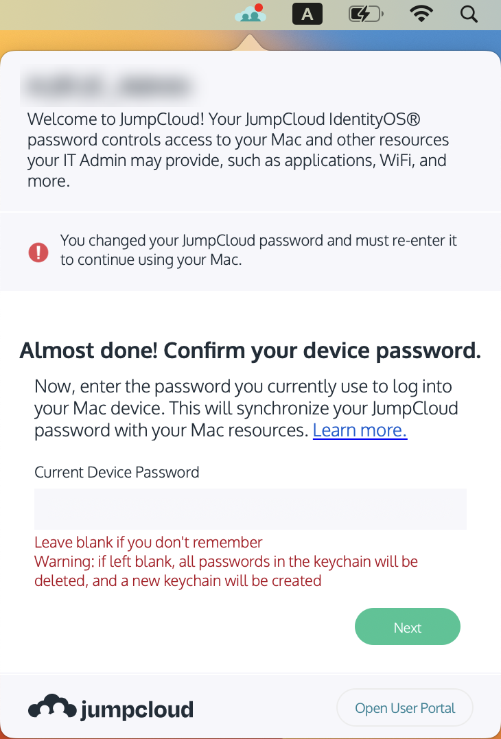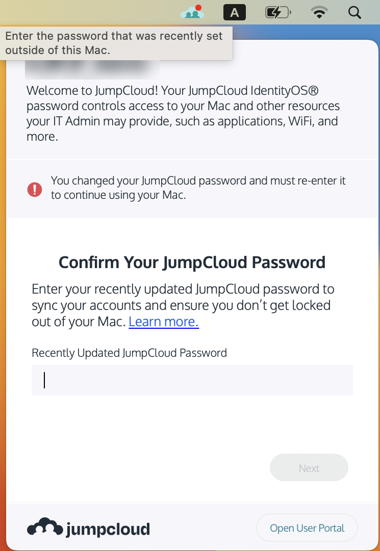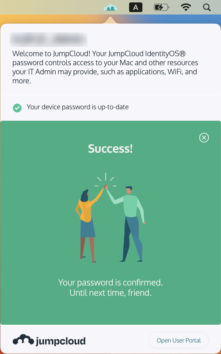 After a password has been updated you must verify the change from the JumpCloud icon on the Menubar.