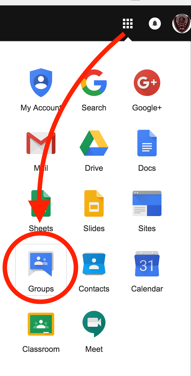 1.Select "Groups" from the Google Apps drawer